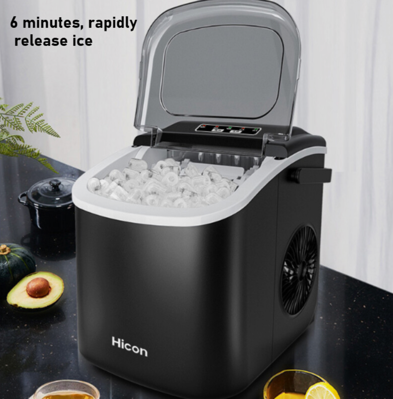 The machine uses a 105W motor to freeze water into bullet-shaped ice in just 6 minutes. Simply fill the tank, press start, and let it handle the rest—no plumbing required.